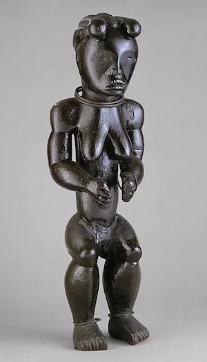 Seated Female, 19th–early 20th century, Fang peoples, Okak group, Gabon or Equatorial Guinea, wood, metal, 64 x 20 x 16.5 cm (The Metropolitan Museum of Art)